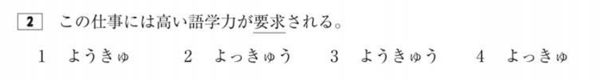 밑줄 친 한자 '요구'를 보고 히라가나가 무엇인지 맞추는 문제이죠