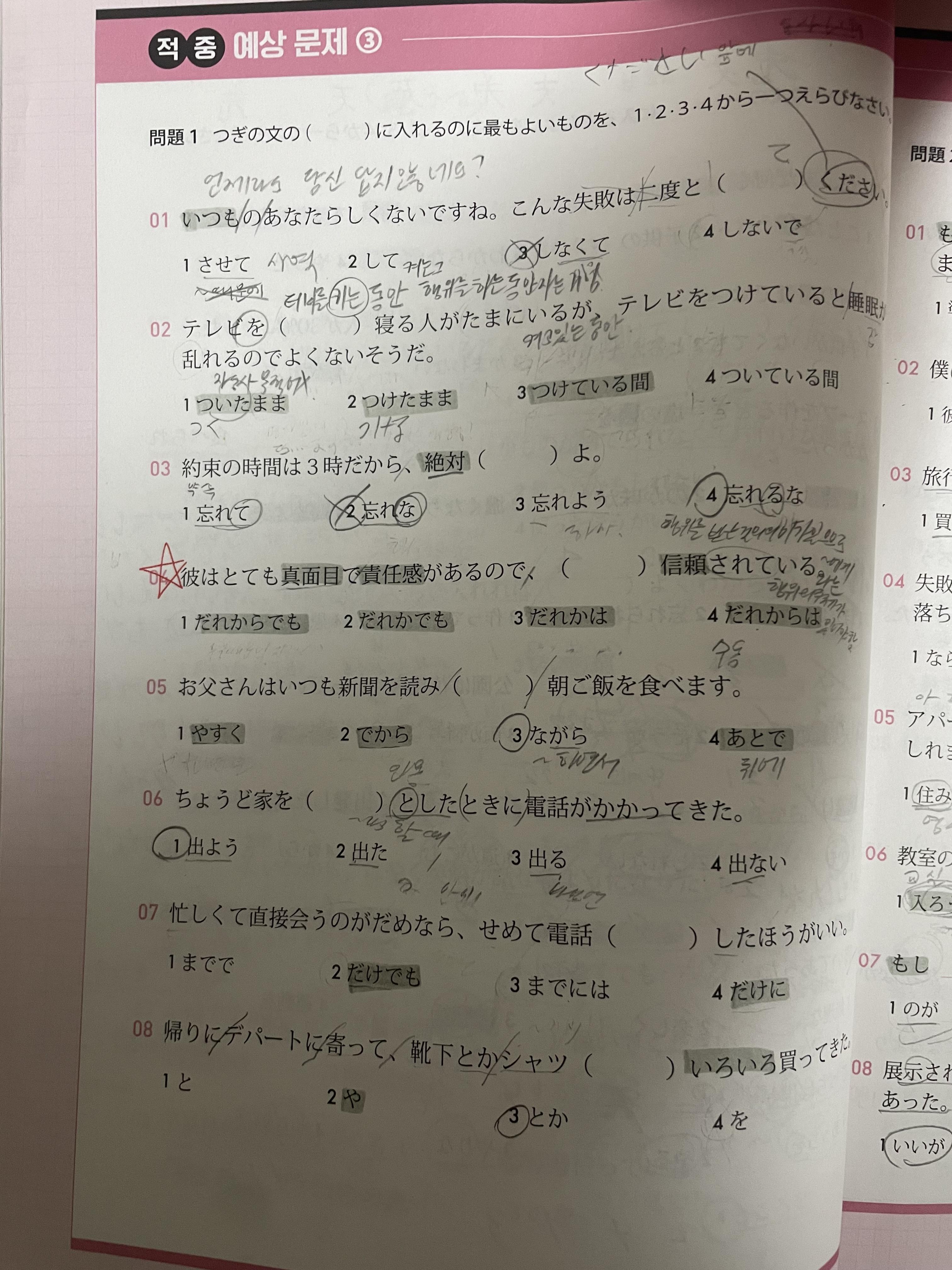 간단한 문법조차 몰랐기 때문에 N3 문법책부터 빠르게 공부했습니다