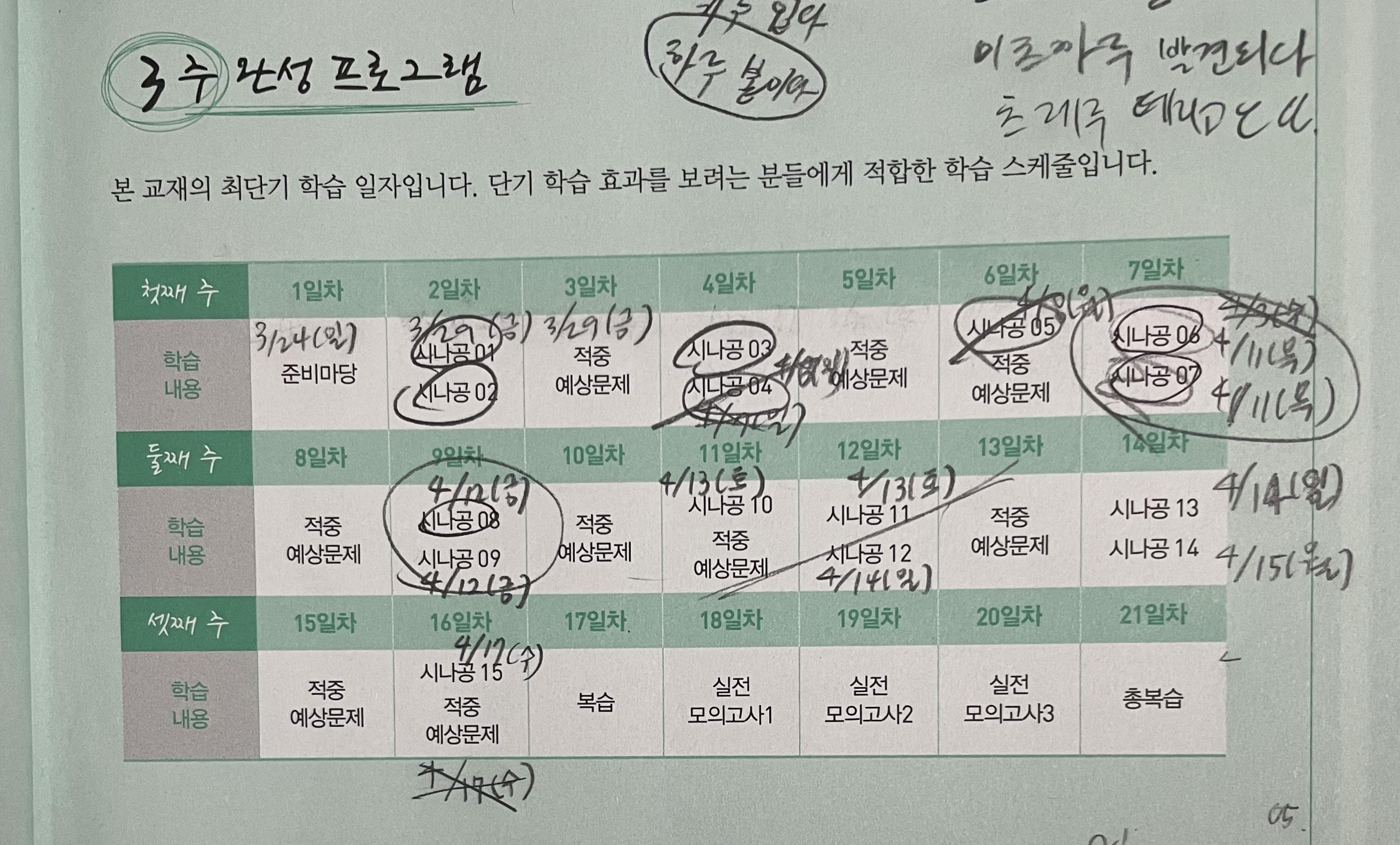 그 스케줄표 참고해서 공부계획 세우시면 됩니다