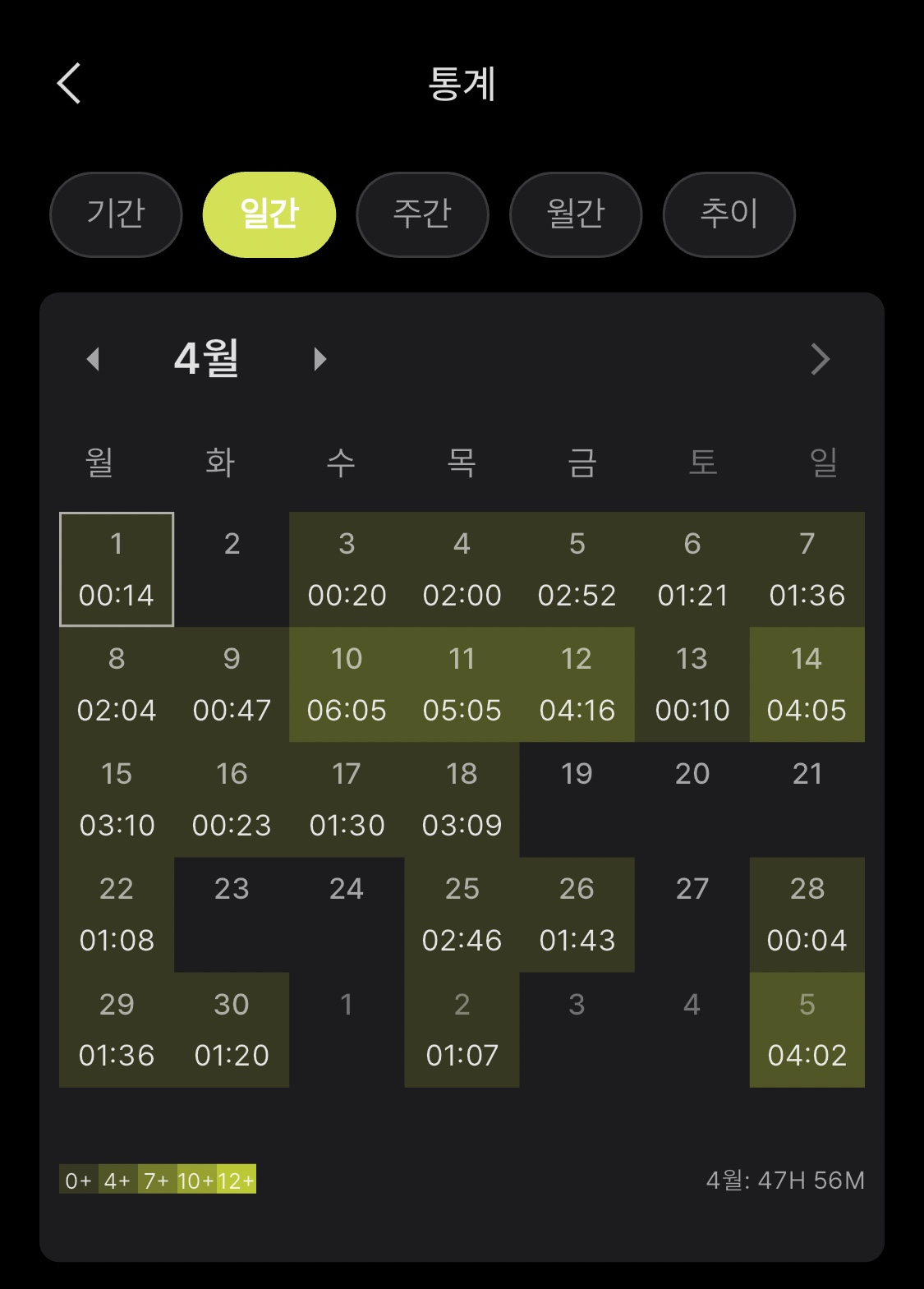 그래서 아래 사진의 공부 시간에서 +1시간씩 해주면 될 것 같습니다