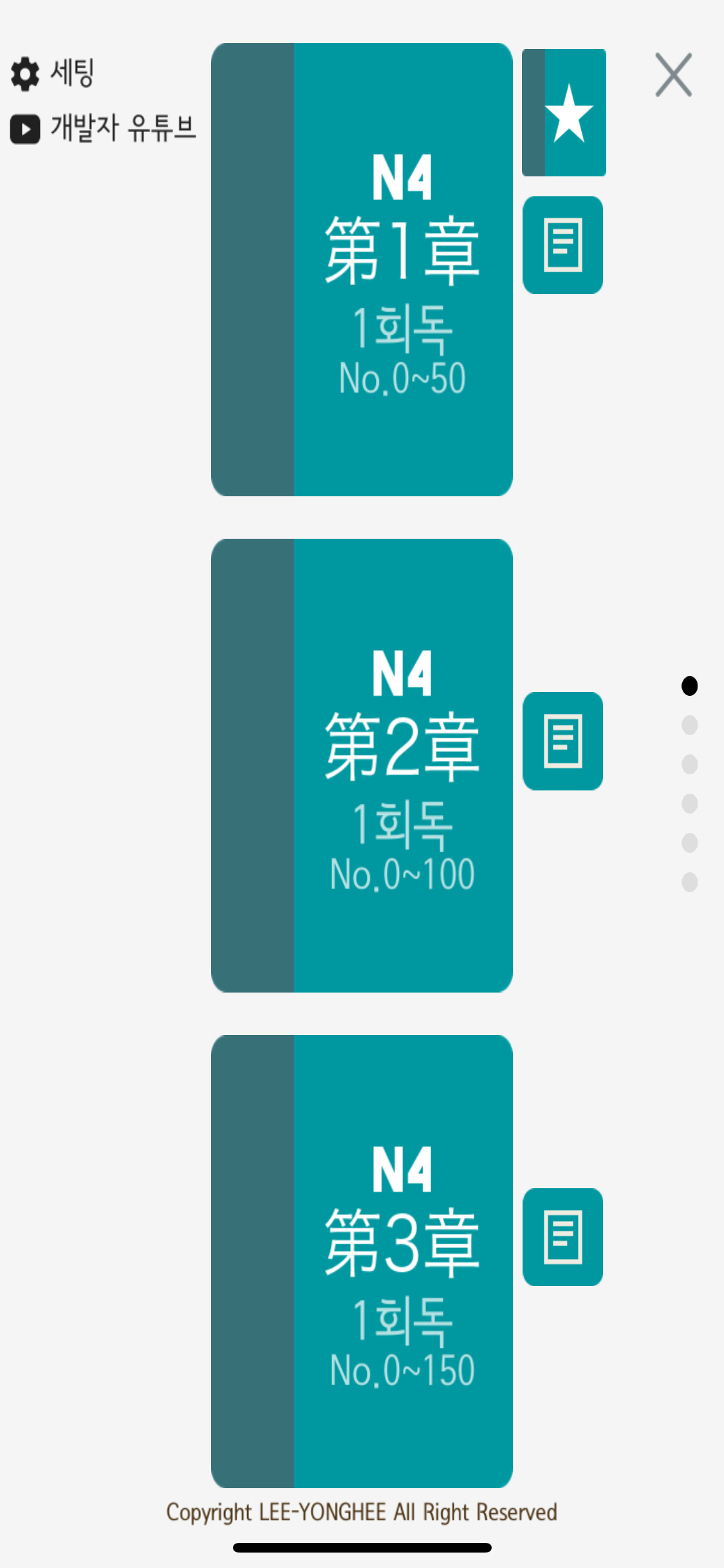 이 앱은 제 1장, 제 2장, ..., 제 N장으로 갈수록 새로운 단어가 50개씩 누적되는 방식이에요